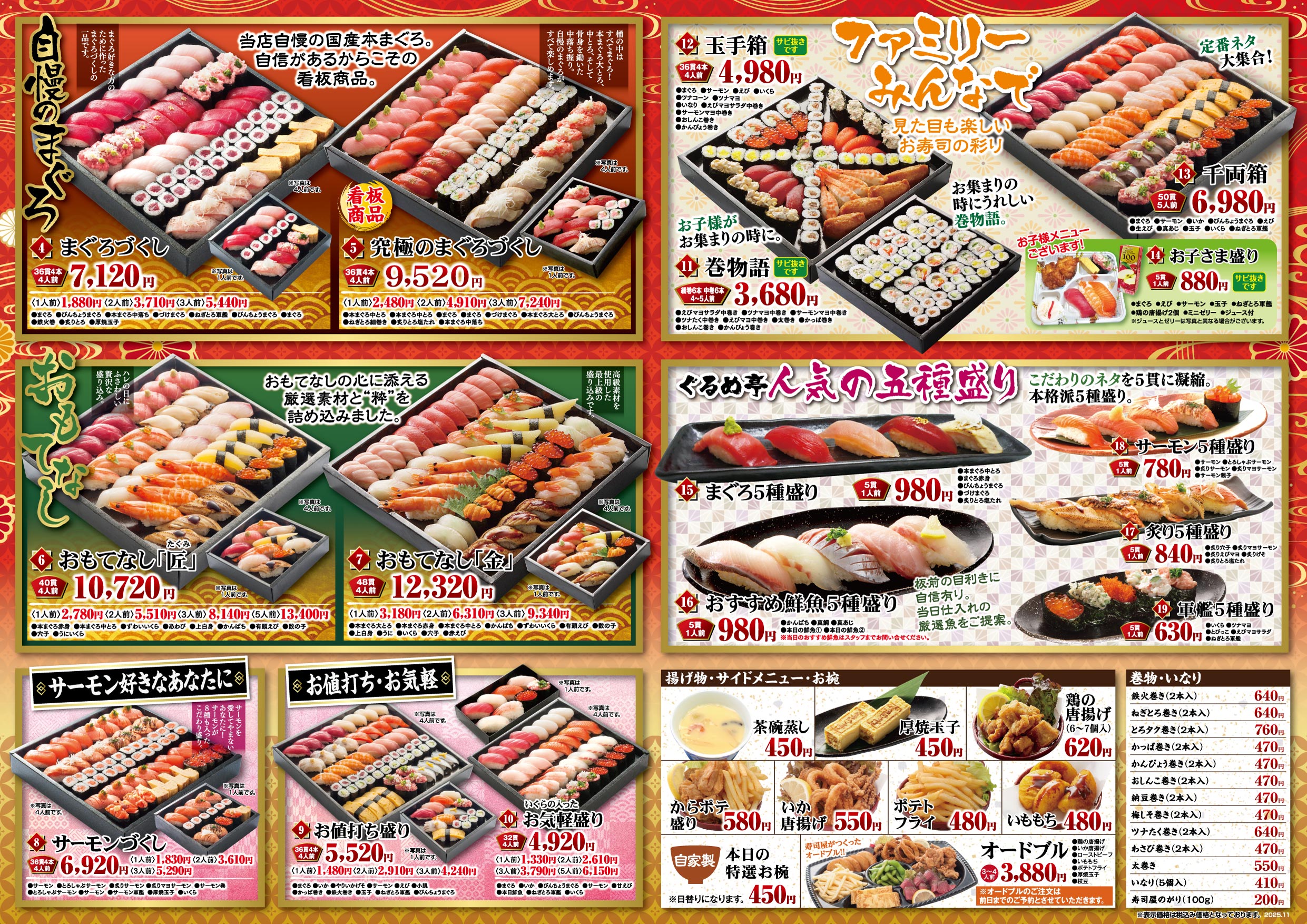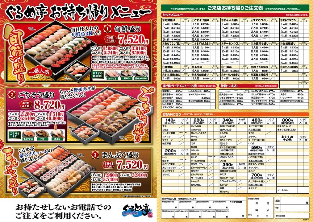 お持ち帰りセットメニューは全品税込価格となっております。
